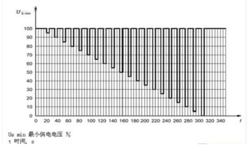 在這里可以看出,在進行這項測試時,直流電源模擬出的電壓波形是有規(guī)律的梯度曲線,其供電電壓以5%的速率下降,保持5s,再上升到起始值,至少保持10s進行功能測試;然后電壓再下降,如此循環(huán)往復,能夠確保待測設備的復位功能得到充分檢驗。